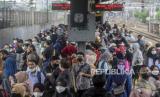 REPUBLIKA.CO.ID, JAKARTA -- Sejumlah penumpang menunggu kedatangan KRL di Stasiun Tanah Abang, Jakarta, Rabu (9/3/2022). Pemerintah memberlakukan peraturan baru menaiki KRL yaitu tempat duduk tanpa jarak, peningkatan kapasitas hingga 60 persen, balita dibolehkan naik dengan didampingi orang tua, wajib memakai masker, dilarang berbicara dan sudah divaksin Covid-19.