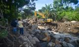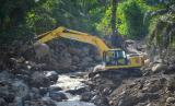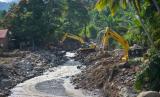 REPUBLIKA.CO.ID, PASAMAN BARAT -- Alat berat membersihkan material longsor di Sungai Batang Nango, Nagari Kajai, Kabupaten Pasaman Barat, Sumatera Barat, Rabu (9/3/2022). Pembersihan material longsor berupa batu dan lumpur usai air sungai meluap di daerah terdampak gempa Magnitudo 6,1 itu dilakukan karena menutupi aliran sungai.