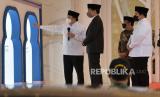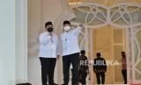 Pengusaha Garibaldi Thohir (kanan) bersama Menteri BUMN Erick Thohir saat acara peresmian Masjid At-Thohir di Tapos, Kota Depok, Jawa Barat Rabu (9/3/2022). Masjid dengan gaya arsitektur Timur Tengah ini akan menjadi sarana dakwah dan ibadah bagi umat Islam. Peletakan batu pertama Masjid At-Thohir telah dilakukan sejak 31 Maret 2018 oleh Wakil Presiden Jusuf Kalla, yang juga merupakan Ketua Dewan Masjid Indonesia (DMI). (FOTO : Republika/Edwin Dwi Putranto)