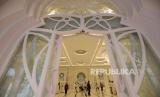 Interior Masjid At-Thohir di Tapos, Kota Depok, Jawa Barat, Rabu (9/3/2022), yang diresmikan Presiden Joko Widodo. Masjid dengan gaya arsitektur Timur Tengah ini akan menjadi sarana dakwah dan ibadah bagi umat Islam. Peletakan batu pertama Masjid At-Thohir telah dilakukan sejak 31 Maret 2018 oleh Wakil Presiden Jusuf Kalla, yang juga merupakan Ketua Dewan Masjid Indonesia (DMI). (FOTO : Republika/Edwin Dwi Putranto)