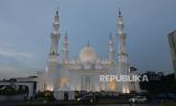 Masjid At-Thohir di Tapos, Kota Depok, Jawa Barat, Rabu (9/3/2022), yang diresmikan Presiden Joko Widodo. Masjid dengan gaya arsitektur Timur Tengah ini akan menjadi sarana dakwah dan ibadah bagi umat Islam. Peletakan batu pertama Masjid At-Thohir telah dilakukan sejak 31 Maret 2018 oleh Wakil Presiden Jusuf Kalla, yang juga merupakan Ketua Dewan Masjid Indonesia (DMI). (FOTO : Republika/Edwin Dwi Putranto)