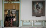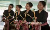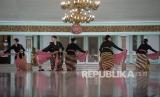 REPUBLIKA.CO.ID, SOLO -- Penari berlatih menampilkan tari Bedhaya Anglir Mendhung di Pura Mangkunegaran, Solo, Jawa Tengah, Rabu (9/3/2022). Tarian sakral peninggalan Mangkunegaran yang ditarikan tujuh penari tersebut nantinya akan dipentaskan dalam acara jumenengan raja atau penobatan takhta GPH Bhre Cakrahutomo Wira Sudjiwo sebagai Mangkunegoro X pada Sabtu (12/3/2022).