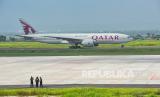 Pesawat kargo Boeing 777 Freighter Qatar Airways yang membawa logistik MotoGP tiba di Bandara Internasional Lombok (BIL), Praya, Lombok Tengah, NTB, Rabu (9/3/2022). Pesawat dengan nomor penerbangan QR8062 dari Doha tersebut membawa logistik seberat 89.900 kg kargo berupa motor, mesin dan perangkat lainnya yang akan digunakan pada MotoGP di Sirkuit Mandalika 18-20 Maret 2022. (FOTO : Antara/Ahmad Subaidi)