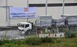 REPUBLIKA.CO.ID, LOMBOK -- Truk membawa logistik untuk MotoGP usai bongkar muat dari pesawat kargo Boeing 777 Freighter Qatar Airways di Bandara Internasional Lombok (BIL), Praya, Lombok Tengah, NTB, Rabu (9/3/2022).