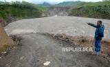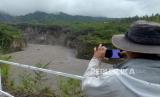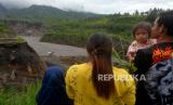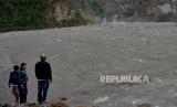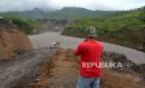 Warga lokal menonton material awan panas guguran (APG) Gunung Merapi di Kali Gendol, Kali Adem, Sleman, Yogyakarta, Kamis (10/3/2022). Aliran material APG pada Rabu (9/3/2022) malam menjangkau jarak luncur kurang lebih 5 kilomete ke arah Kali Gendol. Imbasnya penambangan pasir di Kali Gendol dihentikan untuk sementara. (FOTO : Wihdan Hidayat / Republika)