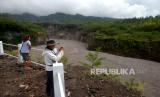 Petugas BPBD dan Hansip berjaga di akses masuk ke kawasan wisata Kali Adem, Sleman, Yogyakarta, Kamis (10/3/2022). Badan Penanggulangan Bencana Daerah (BPBD) Sleman menutup sementara jalur wisata dan jalur penambangan pasir di lereng Gunung Merapi pascaterjadinya awan panas guguran (APG) Gunung Merapi. Mulai Rabu (9/3/2022) malam hingga Kamis (10/3/2022) dini hari terjadi lima kali APG dengan jarak luncur kurang lebih 5 Kilometer ke arah Tenggara atau Sungai Gendol. (FOTO : Wihdan Hidayat / Republika)