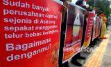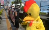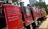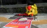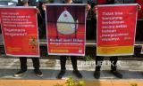 Aktivis dari Animal Friends Jogja (AFJ) menggelar aksi di depan Mc Donalds Jalan Sudirman, Yogyakarta, Kamis (10/3/2022). Dalam aksinya AFJ bersama Act for Farmed Animals ini menentang Mc Donalds atas penggunaan telur dari peternak yang menggunakan kandang baterai. Aksi ini serentak dilakukan di Jakarta, Bali, dan Yogyakarta. (FOTO : Wihdan Hidayat / Republika)