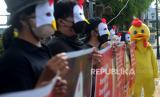 REPUBLIKA.CO.ID, YOGYAKARTA -- Aktivis dari Animal Friends Jogja (AFJ) menggelar aksi di depan Mc Donalds Jalan Sudirman, Yogyakarta, Kamis (10/3/2022).