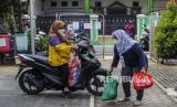 Warga usai membeli pangan bersubsidi di RPTRA Beringin, Cempaka Putih, Jakarta, Jumat (11/3/2022). Pemerintah Provinsi DKI Jakarta menggelar penyaluran pangan bersubsidi untuk komoditas ayam, daging sapi, telur, beras, ikan dan susu, yang dijual dengan harga mulai dari Rp 8.000 hingga Rp 35.000, untuk meningkatkan aksesibilitas masyarakat terhadap pangan murah. Republika/Putra M. Akbar (FOTO : Republika/Putra M. Akbar)