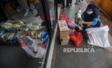 Warga membawa pangan bersubsidi yang telah dibeli di RPTRA Beringin, Cempaka Putih, Jakarta, Jumat (11/3/2022). Pemerintah Provinsi DKI Jakarta menggelar penyaluran pangan bersubsidi untuk komoditas ayam, daging sapi, telur, beras, ikan dan susu, yang dijual dengan harga mulai dari Rp 8.000 hingga Rp 35.000, untuk meningkatkan aksesibilitas masyarakat terhadap pangan murah. (FOTO : Republika/Putra M. Akbar)