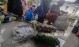 Warga membeli pangan bersubsidi di RPTRA Beringin, Cempaka Putih, Jakarta, Jumat (11/3/2022). Pemerintah Provinsi DKI Jakarta menggelar penyaluran pangan bersubsidi untuk komoditas ayam, daging sapi, telur, beras, ikan dan susu, yang dijual dengan harga mulai dari Rp 8.000 hingga Rp 35.000, untuk meningkatkan aksesibilitas masyarakat terhadap pangan murah. Republika/Putra M. Akbar (FOTO : Republika/Putra M. Akbar)