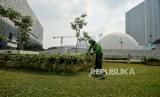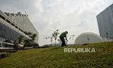 Pekerja beraktivitas di area proyek revitalisasi Taman Ismail Marzuki (TIM), Jakarta, Jumat (11/3/2022). Progres poyek revitalisasi TIM secara keseluruhan saat ini telah mencapai 89 persen diantaranya revitalisasi area Planetarium dan Pusat Latihan Seni, Galeri Annex, Graha Bhakti Budaya, Teater Halaman, Perpustakaan Galeri dan Wisma Seni, masjid Amir Hamzah dan area parkir. proyek revitalisasi TIM ditargetkan rampung pada akhir tahun 2022. (FOTO : Republika/Thoudy Badai)