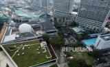 Foto udara area proyek revitalisasi Taman Ismail Marzuki (TIM), Jakarta, Jumat (11/3/2022). Progres poyek revitalisasi TIM secara keseluruhan saat ini telah mencapai 89 persen diantaranya revitalisasi area Planetarium dan Pusat Latihan Seni, Galeri Annex, Graha Bhakti Budaya, Teater Halaman, Perpustakaan Galeri dan Wisma Seni, masjid Amir Hamzah dan area parkir. proyek revitalisasi TIM ditargetkan rampung pada akhir tahun 2022. Republika/Thoudy Badai (FOTO : Republika/Thoudy Badai)