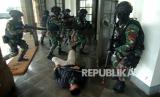 REPUBLIKA.CO.ID, TEGAL -- Prajurit TNI AD melakukan penyergapan musuh saat latihan tempur kota (Latpurkota) Yonif 407/PK di Gedung Birao, Tegal, Jawa Tengah, Jumat (11/3/2022).