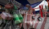 REPUBLIKA.CO.ID,  SEMARANG -- Seorang pengunjung memilih tas anyaman rotan plastik yang dipamerkan dalam Bazaar Klaster Mantriku di halaman Kantor DPRD Jawa Tengah, Semarang, Jawa Tengah, Jumat (11/3/2022).