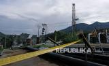 REPUBLIKA.CO.ID, BANJARNEGARA -- Garis polisi terpasang di lokasi kecelakaan kerja di PAD 28 PT Geodipa Energi Desa Pawuhan, kawasan dataran tinggi Dieng, Batur, Banjarnegara, Jawa Tengah Ahad (13/3/2022). Kecelakaan kerja di PLTP (pembangkit listrik tenaga panas bumi) Dieng tersebut menyebabkan satu orang meninggal dan delapan orang dirawat di rumah sakit diduga terkena gas beracun H2S yang terkonsentrasi di alat pompa bor.