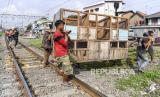 Sejumlah warga mengangkat kandang unggas peliharaannya saat petugas gabungan melakukan penertiban bangunan liar di sekitar lintasan kereta api di Stasiun Ancol hingga Stasiun Tanjung Priok, Jakarta, Senin (14/3/2022). PT KAI Daop 1 Jakarta bersama unsur kewilayahan setempat secara bertahap menertibkan sekitar 326 bangunan liar dan mengimbau warga sekitar untuk menaati peraturan demi keselamatan bersama, menjaga lingkungan di sekitar jalur rel bersih dan keamanan perjalanan kereta api. (FOTO : ANTARA/M Risyal Hidayat)