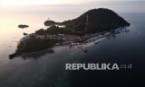 REPUBLIKA.CO.ID, KONAWE -- Foto udara Pulau Labengki yang dijadikan sebagai desa wisata di Desa Labengki Kecil, Konawe Utara, Sulawesi Tenggara, Senin (14/3/2022). Warga menyatakan adanya dampak positif terutama segi perekonomian mereka sejak desa tersebut dijadikan desa wisata oleh pemerintah daerah setempat.
