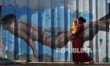 Seorang ibu pemilik homestay desa wisata berjalan disamping rumahnya yang telah didesain lukisan Suku Bajo di Desa Labengki Kecil, Konawe Utara, Sulawesi Tenggara, Senin (14/3/2022). Warga menyatakan adanya dampak positif terutama segi perekonomian mereka sejak desa tersebut dijadikan desa wisata oleh pemerintah daerah setempat. (FOTO : Antara/Jojon)