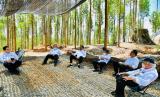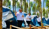 REPUBLIKA.CO.ID, PENAJAM PASER UTARA -- Presiden Jokowi bersama sejumlah menteri di lokasi tempat berkemah di kawasan Ibu Kota Negara Nusantara, Penajam Paser Utara, Kalimantan Timur, Senin (14/3/2022).
