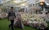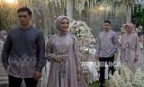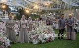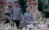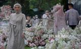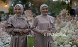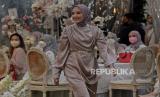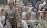 Model memperagakan busana muslim di The Manor Andara, Depok, Jawa Barat, Senin (14/3/2022). Pioner brand muslim online di Indonesia yaitu Vanilla Hijab menggelar fashion show dan gathering yang bertajuk The Most Wonderful Rendezvous of The Year untuk memperkenalkan koleksi terbaru menjelang Bulan Suci Ramadhan dan Hari Raya Idul Fitri 2022 yaitu Signature Raya Collection dan Raya Hijab Collection.Prayogi/Republika. (FOTO : Prayogi/Republika. )