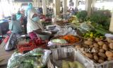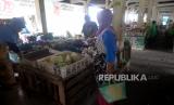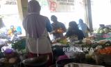 REPUBLIKA.CO.ID, Pedagang melayani pembeli di Pasar Ngasem, Yogyakarta, Selasa (15/3/2022). Menurut pedagang harga sembako masih relatif stabil dua pekan jelang Ramadhan. Pedagang mengeluhkan masih langkanya pasokan minyak goreng hingga saat ini.