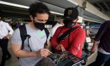 Pebalap MotoGP dari tim WithU Yamaha RNF Andrea Dovizioso membubuhkan tanda tangan untuk pengemar setibanya di Bandara Soekarno Hatta,Tangerang, Banten, Selasa (15/3/2022). Sebanyak 24 orang pebalap dari 12 tim MotoGP sudah tiba di Indonesia yaitu 20 orang diantaranya akan mengikuti parade di Jakarta sebelum turun di MotoGP seri kedua Pertamina Grand Prix of Indonesia di Pertamina Mandalika International Street Circuit. (FOTO : ANTARA/Muhammad Iqbal)