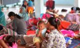 REPUBLIKA.CO.ID, PURWOREJO -- Warga Dusun Kedungrejo mengungsi di Balai Desa Kedungmulyo, Butuh, Purworejo, Jawa Tengah, Rabu (16/3/2022). Sebanyak 140 warga Dusun Kedungrejo harus diungsikan imbas banjir cukup tinggi sejak Selasa (15/3/2022) sore.