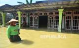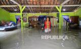 Warga berdiri di dalam rumah yang tergenang air di Desa Cingrong, Purwodadi, Grobogan, Jawa Tengah, Rabu (16/3/2022). Akibat intensitas hujan yang tinggi serta meluapnya Sungai Serang menyebabkan ratusan rumah, beberapa sekolah serta jalan utama di desa itu terendam banjir. (FOTO : Antara/Yusuf Nugroho)