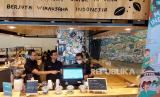 REPUBLIKA.CO.ID,JAKARTA -- Pengunjung memilih menu menggunakan aplikasi wirausaha Majoo saat diperkenalkan di Jakarta, Rabu (16/3/2022).
