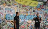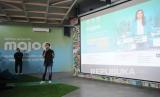 Founder & CEO Majoo Indonesia, Adi Wahyu Rahadi (kanan) didampingi Cofounder & COO Majoo Indonesia Audia Rizal Haraha Memberikan penjelasan tentang aplikasi wirausaha Majoo di Jakarta, Rabu (16/3/2022). Teknologi ECommerce Omnichannel khusus untuk UMKM Indonesia untuk kelola penjualan, pesanan, inventori dan laporan keuangan dari beragam jenis toko online dalam satu aplikasi untuk mendukung digitalisasi industri UMKM. Foto: Tahta Aidilla/Republika (FOTO : Tahta Aidilla/Republika)