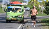 Pembalap Monster Energy Yamaha sekaligus Juara Dunia MotoGP 2021 Fabio Quartararo berolahraga lari di jalanan kawasan Pertamina Mandalika International Street Circuit, Lombok Tengah, NTB, Rabu (16/3/2022). Ajang balapan MotoGP seri kedua 2022 bertajuk Pertamina Grand Prix of Indonesia akan berlangsung pada 18-20 Maret 2022. (FOTO : ANTARA/Andika Wahyu)