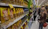 Warga membeli minyak goreng di salah satu pusat perbelanjaan di Jalan Pahlawan, Cibeunying Kidul, Kota Bandung, Kamis (17/3/2022). Pemerintah mencabut aturan Harga Eceran Tertinggi (HET) minyak goreng kemasan, selanjutnya harga minyak goreng kemasan akan diserahkan ke mekanisme pasar dengan menyesuaikan nilai keekonomiannya. Di Kota Bandung, harga minyak goreng kemasan naik menjadi Rp47.800 per dua liter yang semula Rp28.000. Foto: Republika/Abdan Syakura (FOTO : REPUBLIKA/ABDAN SYAKURA)