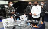 Presiden Joko Widodo (kedua kanan) menyimak penjelasan tentang mesin mobil listrik Ioniq 5 di Pabrik Hyundai Motor Manufacturing Indonesia di Bekasi, Jawa Barat, Rabu (16/3/2022). Presiden Joko Widodo meresmikan pabrik Hyundai Motor Manufacturing Indonesia yang berada di Bekasi, Jawa Barat, pada hari ini Rabu (16/3/2022) sekaligus meresmikan peluncuran mobil listrik Ioniq 5 pertama yang dibuat di Indonesia. (FOTO : ANTARA/Biro Pers, Media dan Informasi )