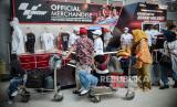 Penumpang mengamati produk motoGP di Bandara Udara Internasional Lombok Zainudin Abdul Madjid, Kabupaten Lombok Tengah, Nusa Tenggara Barat, Kamis (17/3/2022). Berbagai pernak pernik motoGP mulai memenuhi area Bandara Udara Internasional Lombok jelang gelaran MotoGP Pertamina Grand Prix of Indonesia yang akan berlangsung pada 18-20 Maret 2022 mendatang. Republika/Thoudy Badai (FOTO : Republika/Thoudy Badai)