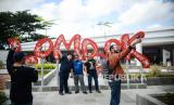 Penumpang berfoto di depan tulisan Lombok di Bandara Udara Internasional Lombok Zainudin Abdul Madjid, Kabupaten Lombok Tengah, Nusa Tenggara Barat, Kamis (17/3/2022). Berbagai pernak pernik motoGP mulai memenuhi area Bandara Udara Internasional Lombok jelang gelaran MotoGP Pertamina Grand Prix of Indonesia yang akan berlangsung pada 18-20 Maret 2022 mendatang. Republika/Thoudy Badai (FOTO : Republika/Thoudy Badai)