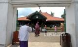 Warga mendatangi masjid untuk nyadran di Masjid Pathok Negoro Plosokuning, Sleman, Yogyakarta, Jumat (18/3/2022). Tradisi Nyadran biasa dilakukan warga di Plosokuning jelang Ramadhan. Usai shalat Jumat warga membawa berbagai makanan dan dilanjutkan berdoa bersama mendoakan leluhur di masjid. Makanan yang dibawa kemudian dibagikan kepada warga yang ikut Nyadran. (FOTO : Wihdan Hidayat / Republika)
