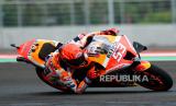 Pembalap Repsol Honda Team Marc Marquez memacu sepeda motornya saat sesi latihan bebas 1 MotoGP seri Pertamina Grand Prix of Indonesia 2022 di Pertamina Mandalika International Street Circuit, Lombok Tengah, NTB, Jumat (18/3/2022). Seri Pertamina Grand Prix of Indonesia 2022 diawali dengan latihan bebas atau free practice selama 45 menit sebelum berlaga pada Ahad (20/3/2022) mendatang. (FOTO : Republika/Thoudy Badai)