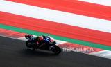 Pembalap Monster Energy Yamaha MotoGP Fabio Quartararo memacu sepeda motornya saat sesi latihan bebas 1 MotoGP seri Pertamina Grand Prix of Indonesia 2022 di Pertamina Mandalika International Street Circuit, Lombok Tengah, NTB, Jumat (18/3/2022). Seri Pertamina Grand Prix of Indonesia 2022 diawali dengan latihan bebas atau free practice selama 45 menit sebelum berlaga pada Ahad (20/3/2022) mendatang. Republika/Thoudy Badai (FOTO : Republika/Thoudy Badai)