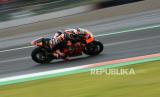 Pembalap Red Bull KTM Ajo Pedro Acosta memacu kecepatan saat sesi latihan bebas moto2 dalam seri Pertamina Grand Prix of Indonesia 2022 di Pertamina Mandalika International Street Circuit, Lombok Tengah, NTB, Jumat (18/3/2022). Seri Pertamina Grand Prix of Indonesia 2022 diawali dengan latihan bebas atau free practice selama 40 menit sebelum berlaga pada Ahad (20/3/2022) mendatang.Republika/Thoudy Badai (FOTO : Republika/Thoudy Badai)