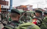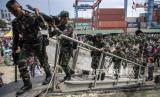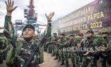 Prajurit Raider meneriakkan yel usai mengikuti upacara pengantaran Satgas Satuan Organik Papua Yonif Raider 142/Ksatria Jaya di Pelabuhan Boom Baru Palembang, Sumatera Selatan, Jumat (18/3/2022). Sebanyak 400 prajurit Yonif 142/Ksatria Jaya diberangkatkan menuju Papua dengan menggunakan KRI Teluk Bintuni-520 untuk menjalankan tugas menjaga keamanan bersama dengan satuan-satuan lainnya selama sembilan bulan. (FOTO : ANTARA/Nova Wahyudi)