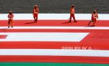REPUBLIKA.CO.ID, MANDALIKA -- Marshall membersihkan area lintasan usai dipakai sesi latihan bebas 1 MotoGP seri Pertamina Grand Prix of Indonesia 2022 di Pertamina Mandalika International Street Circuit, Lombok Tengah, NTB, Jumat (18/3/2022). Marshall direkrut dari berbagai latar belakang profesi termasuk warga setempat.