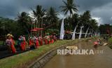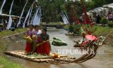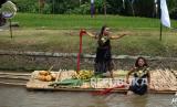 REPUBLIKA.CO.ID, YOGYAKARTA -- Peserta berpose di atas perahu getek saat Festival Van Der Wijck di Tangisan, Banyurejo, Tempel, Sleman, D.I Yogyakarta, Sabtu (19/3/2022). Festival yang digelar di area bangunan cagar budaya Kanal Van Der Wijck itu menampilkan berbagai kesenian sebagai ajang promosi pertanian dan pariwisata di kawasan Sleman Barat.