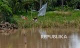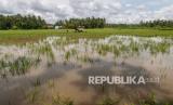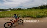 REPUBLIKA.CO.ID, PANDEGLANG -- Seorang anak bersepeda di sekitar sawah yang terendam banjir di Carita, Pandeglang, Banten, Sabtu (19/3/2022). Puluhan hektar sawah di kawasan tersebut terancam gagal panen akibat banjir yang merendam kawasan tersebut pada Sabtu (19/3/2022) dini hari.