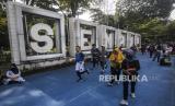 Taman Sempur ramai dikunjungi warga yang ingin berolahraga pada akhir pekan..