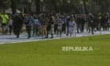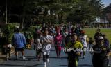 Warga saat berolahraga di Taman Sempur, Kota Bogor, Jawa Barat, Ahad (20/3/2022). Taman Sempur ramai dikunjungi warga yang ingin berolahraga pada akhir pekan pasca dibukanya kembali untuk umum pada masa PPKM level 2 setelah dua tahun ditutup akibat pandemi Covid-19. (FOTO : Republika/Putra M. Akbar)