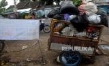 Gerobak sampah menunggu pengangkutan menuju TPST Piyungan di Yogyakarta, Ahad (20/3/2022). Sejak Jumat (18/3/2022) TPST Piyungan ditutup sementara selama tiga hari untuk perbaikan infrastruktur. Imbasnya, sampah menggunung di beberapa titik Kota Yogyakarta. Penutupan sementara TPST Piyungan merupakan yang kedua selama 2022 ini. (FOTO : Wihdan Hidayat / Republika)