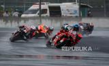 Pembalap memacu kecepatan sepeda motornya saat balapan MotoGP seri Pertamina Grand Prix of Indonesia 2022 di Pertamina Mandalika International Street Circuit, Lombok Tengah, NTB, Ahad (20/3/2022). Pembalap Red Bull Factory Racing, Miguel Oliveira berhasil menjadi juara pertama disusul pembalap Monster Energy Yamaha MotoGP Fabio Quartararo di posisi kedua dan pembalap Pramac Racing Johann Zarco ketiga. Republika/Thoudy Badai (FOTO : Republika/Thoudy Badai)