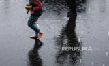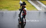 REPUBLIKA.CO.ID,Pawang hujan Rara Isti Wulandari (tengah) melakukan ritual saat hujan mengguyur Pertamina Mandalika International Street Circuit, Lombok Tengah, NTB, Ahad (20/3/2022).