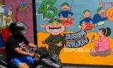 Lukisan mural tokoh Punakawan di dinding gang masuk Kampung Cokrokusuman, Jetis, Yogyakarta, Senin (21/3/2022). Lukisan karya seniman Kampung Cokrokusuman ini menambah semarak suasana kampung. Lukisan ini digarap dengan dana swadaya warga setempat. Diharapkan bisa menjadi hiburan warga dan ikon kampung Cokrokusuman. (FOTO : Wihdan Hidayat / Republika)